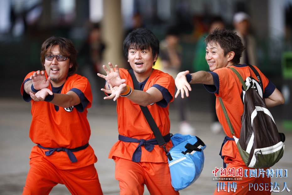 逛世博一定會(huì)拍照留念,擺一個(gè)漂亮有創(chuàng)意的pose尤為重要。面對著鏡頭,挺胸收腹翹臀,一個(gè)微笑,一個(gè)手勢,秀出自己的活力。心中一定要默念:“我留下的不是照片,是心情!”圖為日本館工作人員擺出漫畫《七龍珠》里的小悟空的經(jīng)典pose。中新社記者 盛佳鵬 攝