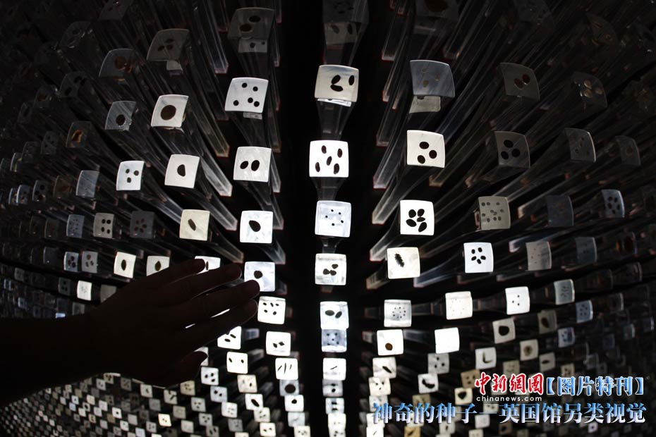 上海世博園開園才數(shù)日,自號“種子圣殿”的英國館已成人氣最旺場館之一。該館由6萬根亞克力桿巧妙構(gòu)成,隨風搖動,頗為新奇。其每根桿子里都含有植物種子。中新社記者 盛佳鵬 攝