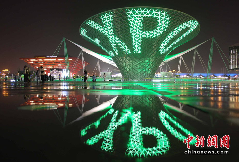 夜幕下的上海世博園區(qū)處處流露光華與璀璨,世博軸上的“陽(yáng)光谷”成為一個(gè)個(gè)流光溢彩的“夜光杯”,以不同色調(diào)交織成流動(dòng)的光影旋律,給游客們帶來(lái)難以忘懷的感受。圖為世博軸“陽(yáng)光谷”與中國(guó)館的燈光交相輝映,“陽(yáng)光谷”上打出世博會(huì)的英文簡(jiǎn)稱。中新社發(fā) 宗金柱 攝