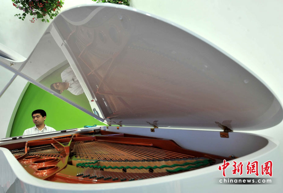 5月4日是上海世博會(huì)第四天,盲人鋼琴家孫巖在生命陽光館專設(shè)區(qū)域?yàn)楸姸鄽埣踩撕陀^眾演奏,導(dǎo)盲犬靜臥在他的腳邊,這是世博會(huì)歷史上第一次為殘疾人設(shè)館。孫巖2005年獲得“日本橫濱第一屆國(guó)際殘疾人鋼琴比賽”金獎(jiǎng),他是中央音樂學(xué)院有史以來第一位盲人大學(xué)生和研究生。他的傾情演奏感動(dòng)全場(chǎng),掌聲連連。中新社發(fā) 賈國(guó)榮 攝