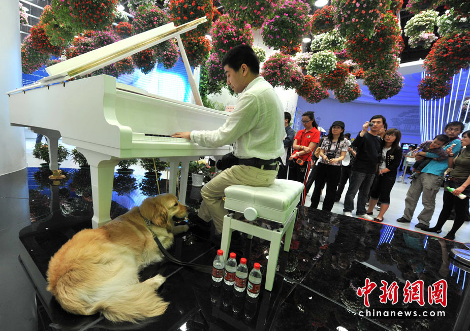 5月4日是上海世博會第四天,盲人鋼琴家孫巖在生命陽光館專設(shè)區(qū)域為眾多殘疾人和觀眾演奏,導盲犬靜臥在他的腳邊,這是世博會歷史上第一次為殘疾人設(shè)館。孫巖2005年獲得“日本橫濱第一屆國際殘疾人鋼琴比賽”金獎,他是中央音樂學院有史以來第一位盲人大學生和研究生。他的傾情演奏感動全場,掌聲連連。中新社發(fā) 賈國榮 攝