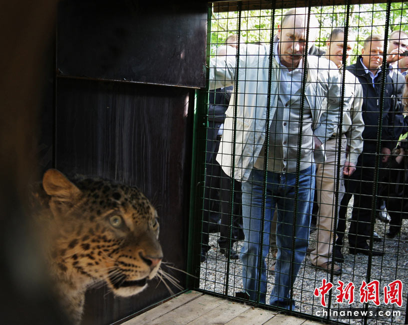 近日,俄羅斯總理普京來到2014年冬奧會舉辦地索契一家動物園,觀看一頭用東北虎換來的波斯豹。普京饒有興致地觀察了一會兒后,對這頭剛剛到來、還有些認(rèn)生的豹說:“別害怕,跑起來”,還向它做了個(gè)飛吻。此次從伊朗引進(jìn)波斯母豹,是希望與本地的土庫曼尼斯坦公豹交配,以挽救這一瀕臨滅絕的物種。