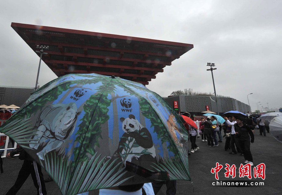 5月5日,上海世博會(huì)迎來開園五天來首個(gè)春雨天,雨中的中國(guó)館依然是游客參觀的最愛。中新社記者 賈國(guó)榮攝