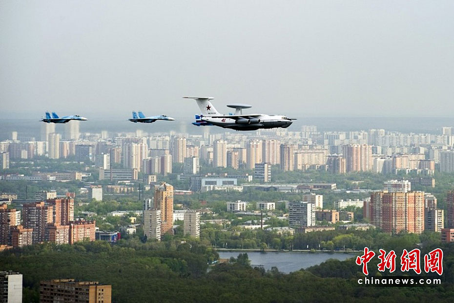 當(dāng)?shù)貢r(shí)間5月4日,在俄羅斯首都莫斯科,參加彩排的戰(zhàn)機(jī)編隊(duì)飛過紅場(chǎng)上空。俄羅斯將于5月9日隆重紀(jì)念衛(wèi)國戰(zhàn)爭(zhēng)勝利65周年。圖片來源:中國新聞網(wǎng)