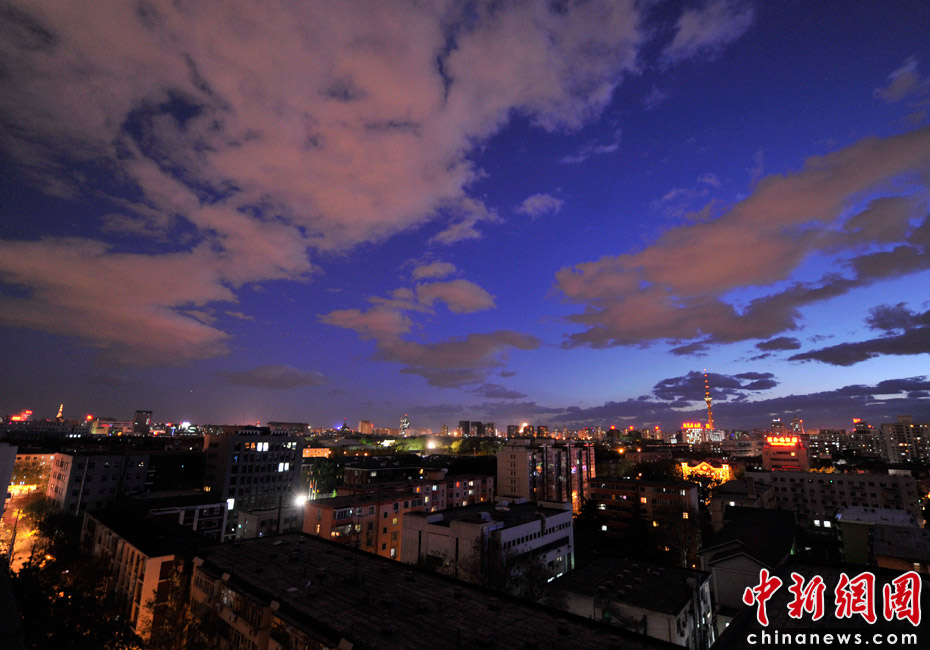 5月5日立夏,京城降雨今晨剛剛結(jié)束,霧氣伺機(jī)又起。傍晚時(shí)分,隨著四級(jí)北風(fēng)的到來(lái),京城天氣逐漸轉(zhuǎn)晴,霧氣慢慢消散天空彤云密布夜色瑰麗。中新網(wǎng)記者 金碩 攝