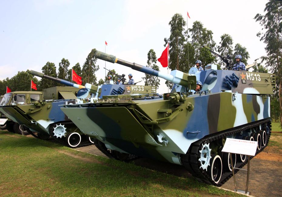 海軍陸戰(zhàn)隊兩棲突擊車在慶典儀式上進行展示。圖片來源:新華網(wǎng) 查春明攝