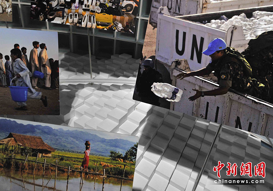一所藍(lán)色的簡樸平房,在5月開園的上海世博會大道邊上,極不顯眼。但是,聯(lián)合國聯(lián)合館的鮮明會標(biāo),特別吸引人。這個(gè)展館集中了世界衛(wèi)生組織、世界銀行和聯(lián)合國的兒童基金會、糧農(nóng)組織、教科文組織等22個(gè)機(jī)構(gòu)。圖片來源:中國新聞網(wǎng) 賈國榮 攝