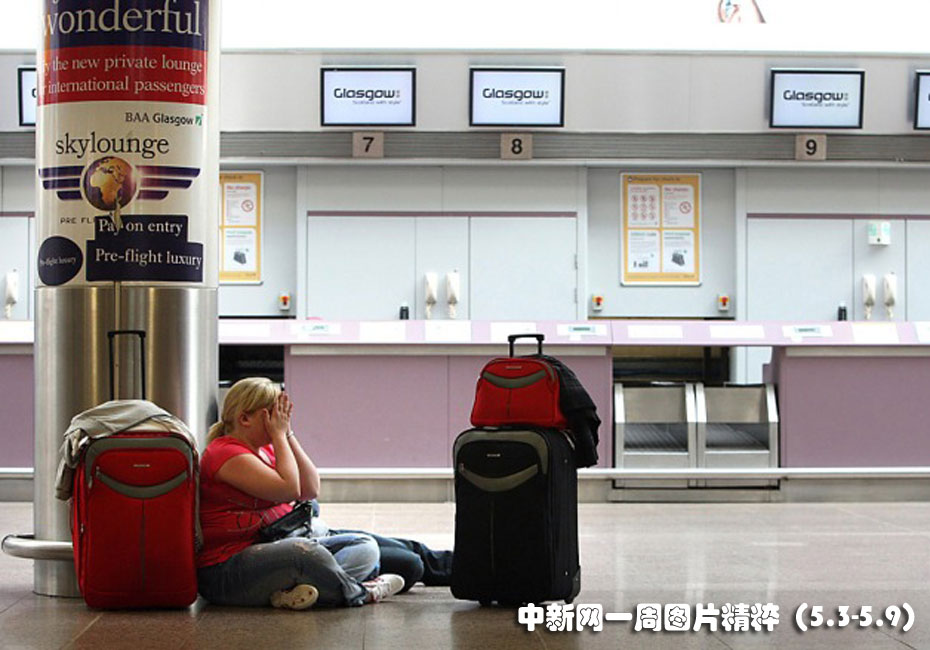 5月5日周三,在格拉斯哥機(jī)場(chǎng),由于冰島新一波濃密火山灰導(dǎo)致航班取消,一名女士沮喪地用手遮住臉。愛爾蘭和蘇格蘭的空中交通均受到影響,英格蘭則僥幸未受波及。