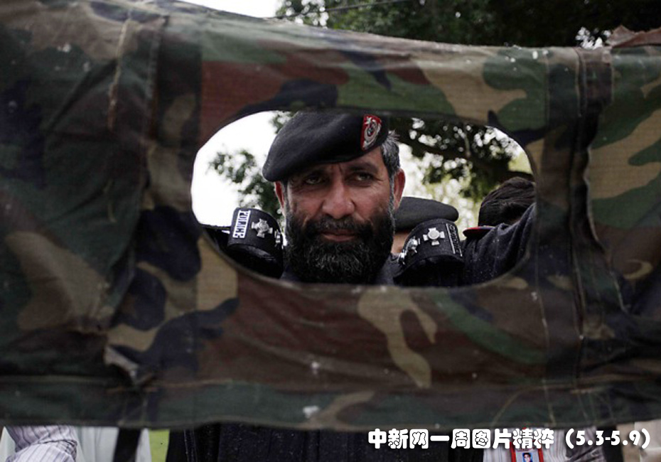 5月6日周四,在巴基斯坦白沙瓦,警察向媒體展示一名自殺式襲擊者的衣物殘骸。當?shù)毓賳T逮捕了兩名據(jù)稱發(fā)動了自殺式爆炸的嫌犯。
