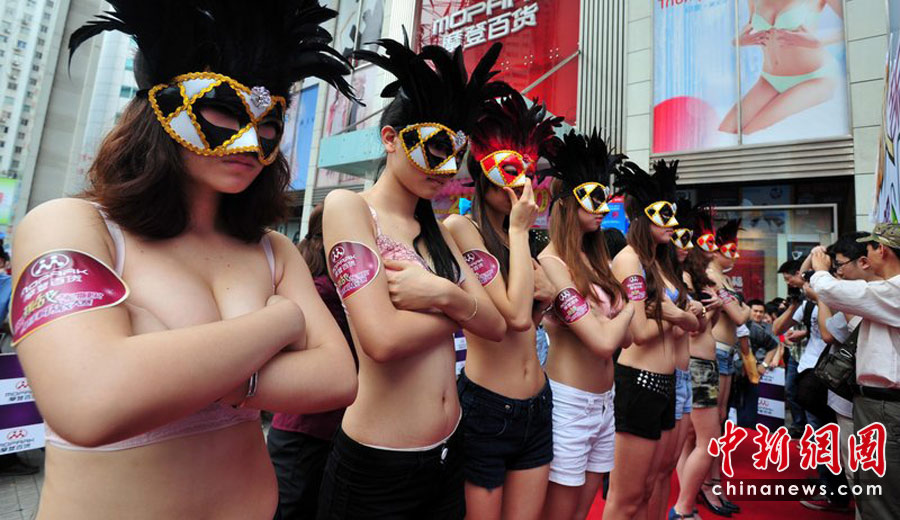 2010年5月8日,在廣州天河某個(gè)百貨商場門口上演了一場另類的“解內(nèi)衣”比賽。