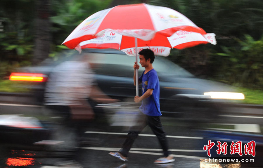 未來三天,青藏高原中東部、西南地區(qū)、江漢、江淮、江南、華南等地將持續(xù)陰雨天氣,其中,廣西南部、廣東大部、江西南部、福建南部、海南西北部、湖北大部、湖南北部、重慶大部等地有大雨或暴雨,局地有大暴雨。圖為5月9日傍晚,佛山市禪城區(qū)文華北路,一位市民撐著一個大傘過馬路。崔景印攝(CFP)
