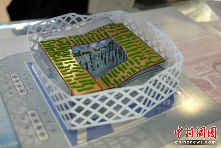 世博園區(qū)內(nèi)的特許商品店里,折紙場館惟妙惟肖,頗受游客的喜愛。圖為法國館紙模型。中新網(wǎng)記者 吳歆 攝
