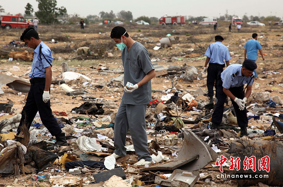 5月12日,一架從南非起飛的利比亞航班在利比亞首都的黎波里機(jī)場(chǎng)墜毀,機(jī)上103名乘客和機(jī)組人員遇難。圖片來源:中國(guó)新聞網(wǎng)