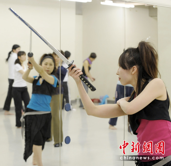 近日,在日本東京,眾多白領女性學起了日本傳統(tǒng)的武士刀,用來減壓。