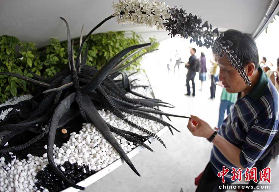 圖為英國(guó)館內(nèi)神奇的植物。 中新社記者 廖攀 攝