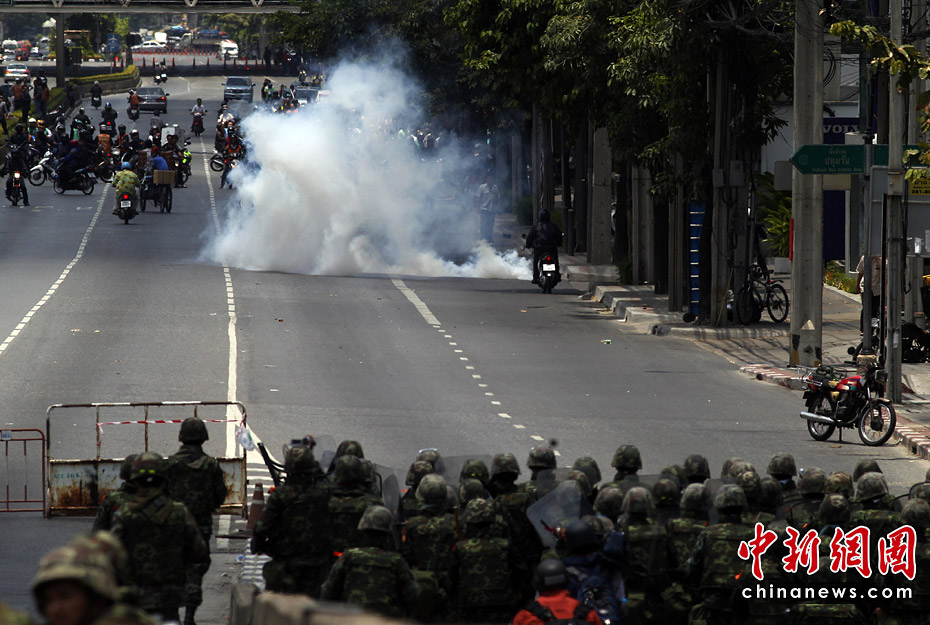 泰國(guó)政府軍和反政府示威者5月14日深夜在曼谷爆發(fā)嚴(yán)重暴力沖突。曼谷緊急醫(yī)療機(jī)構(gòu)15日稱(chēng),截止當(dāng)?shù)貢r(shí)間早晨6時(shí),沖突已導(dǎo)致16人死亡,至少141受傷,傷者中包括3名外國(guó)人。圖片來(lái)源:中國(guó)新聞網(wǎng)