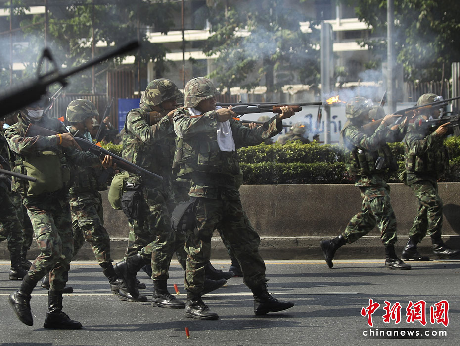 泰國政府軍和反政府示威者5月14日深夜在曼谷爆發(fā)嚴重暴力沖突。曼谷緊急醫(yī)療機構(gòu)15日稱,截止當(dāng)?shù)貢r間早晨6時,沖突已導(dǎo)致16人死亡,至少141受傷,傷者中包括3名外國人。圖片來源:中國新聞網(wǎng)