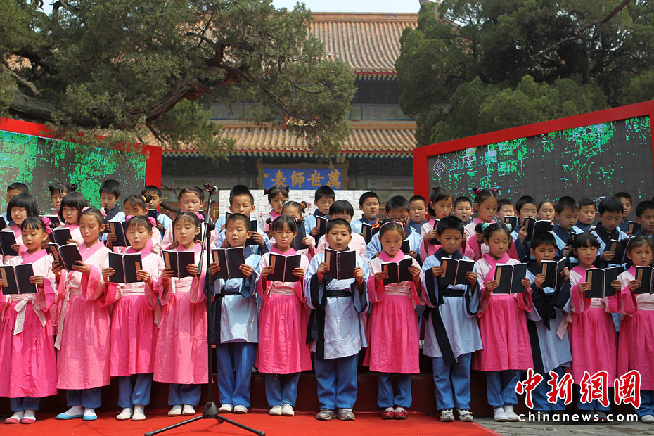 5月15日,首屆“兩岸漢字藝術(shù)節(jié)”新聞發(fā)布會(huì)在北京孔廟舉行。原文化部長(zhǎng)、著名作家王蒙與臺(tái)灣文化總會(huì)會(huì)長(zhǎng)劉兆玄等共同書(shū)寫(xiě)漢字——“漢字藝術(shù)源遠(yuǎn)流長(zhǎng)”。 中新社發(fā) 蘇丹 攝