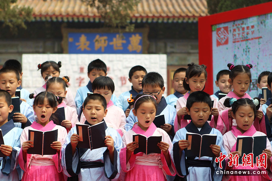 5月15日,首屆“兩岸漢字藝術(shù)節(jié)”新聞發(fā)布會(huì)在北京孔廟舉行。原文化部長、著名作家王蒙與臺(tái)灣文化總會(huì)會(huì)長劉兆玄等共同書寫漢字——“漢字藝術(shù)源遠(yuǎn)流長”。 中新社發(fā) 蘇丹 攝