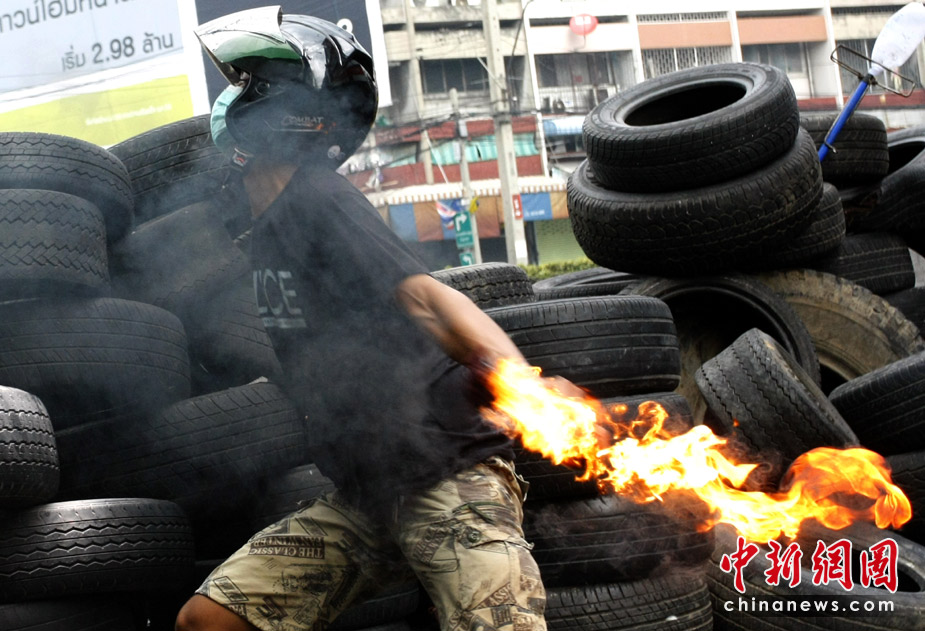泰國軍隊和反政府的“紅衫軍”16日繼續(xù)在曼谷的多處地點對峙,槍聲和爆炸聲不時響起,曼谷的部分街道已成為“戰(zhàn)區(qū)”。泰國急救醫(yī)療部門17日表示,泰國軍警與反政府“紅衫軍”示威民眾3天來在曼谷街頭爆發(fā)的沖突,死亡人數(shù)已經(jīng)上升到35人。圖片來源:中國新聞網(wǎng)