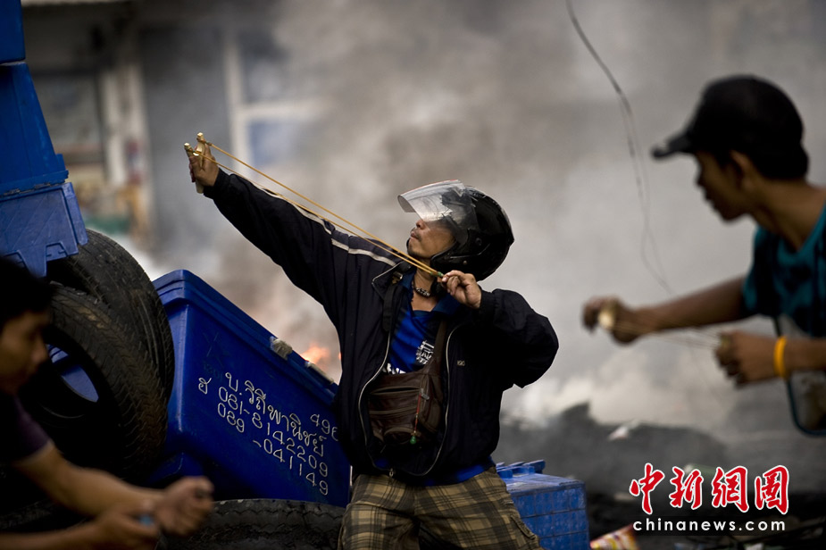 泰國(guó)軍隊(duì)和反政府的“紅衫軍”16日繼續(xù)在曼谷的多處地點(diǎn)對(duì)峙,槍聲和爆炸聲不時(shí)響起,曼谷的部分街道已成為“戰(zhàn)區(qū)”。泰國(guó)急救醫(yī)療部門17日表示,泰國(guó)軍警與反政府“紅衫軍”示威民眾3天來(lái)在曼谷街頭爆發(fā)的沖突,死亡人數(shù)已經(jīng)上升到35人。圖片來(lái)源:中國(guó)新聞網(wǎng)