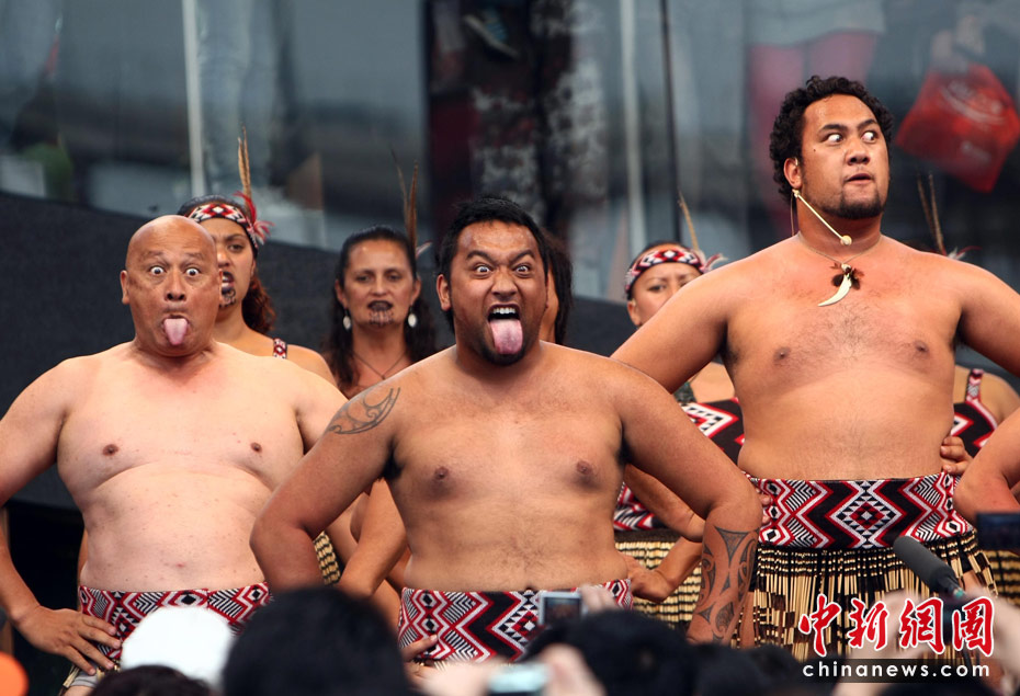 5月初,游客在上海世博會(huì)新西蘭館前赤膊上陣學(xué)跳毛利舞。中新社記者 杜洋 攝