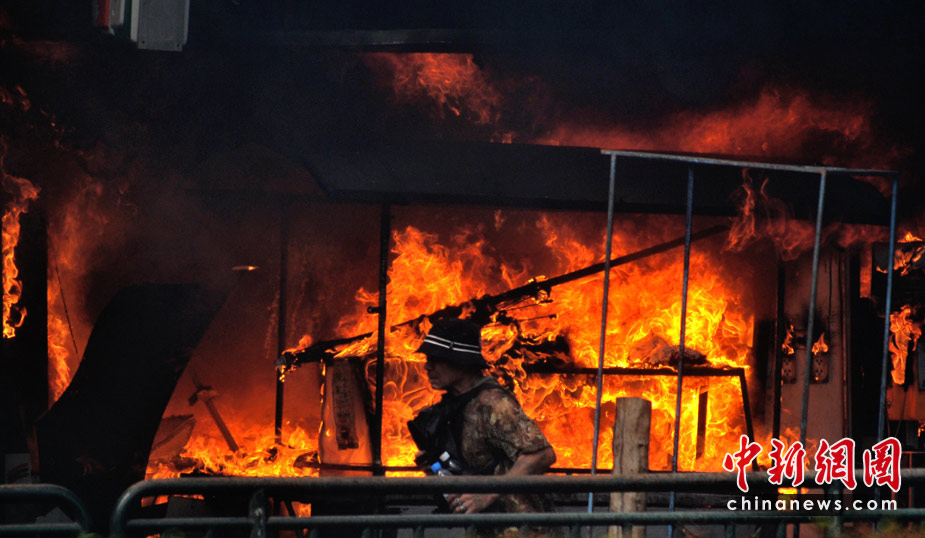 泰國軍方19日清場,希望將陷入內(nèi)戰(zhàn)邊緣的曼谷拯救出來,雖然紅衫軍節(jié)節(jié)敗退,但有激進(jìn)分子未肯罷休,四處放火,電視臺、股票交易所、電力公司、幾間銀行、商場戲院都遭殃,商場和便利店亦成為搶掠目標(biāo)。據(jù)報(bào)曼谷有27處地方起火,泰國最大的商場Central World、Siam Square和Siam Paragon三大購物中心被縱火,其中Central World燒通頂,據(jù)報(bào)快將倒塌。