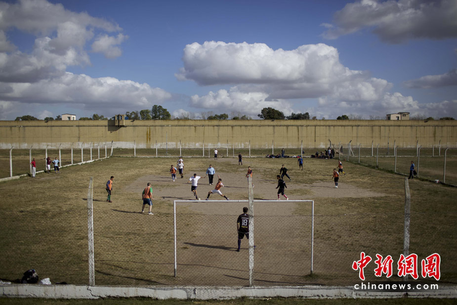 5月18日,阿根廷布宜諾斯艾利斯,作為一項(xiàng)文化活動(dòng)的一部分,阿根廷政府在世界杯到來之前組織幾家監(jiān)獄進(jìn)行足球比賽。