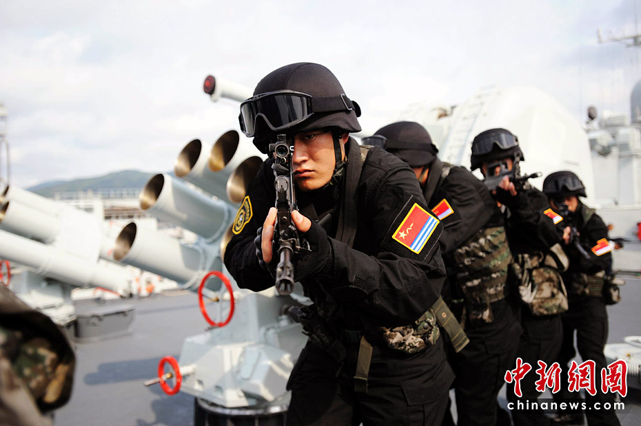 3月2日,特戰(zhàn)隊(duì)員在168艦上一絲不茍地對(duì)各種方案預(yù)案進(jìn)行演練。他們說(shuō),不給海盜有任何機(jī)會(huì)。江山 攝