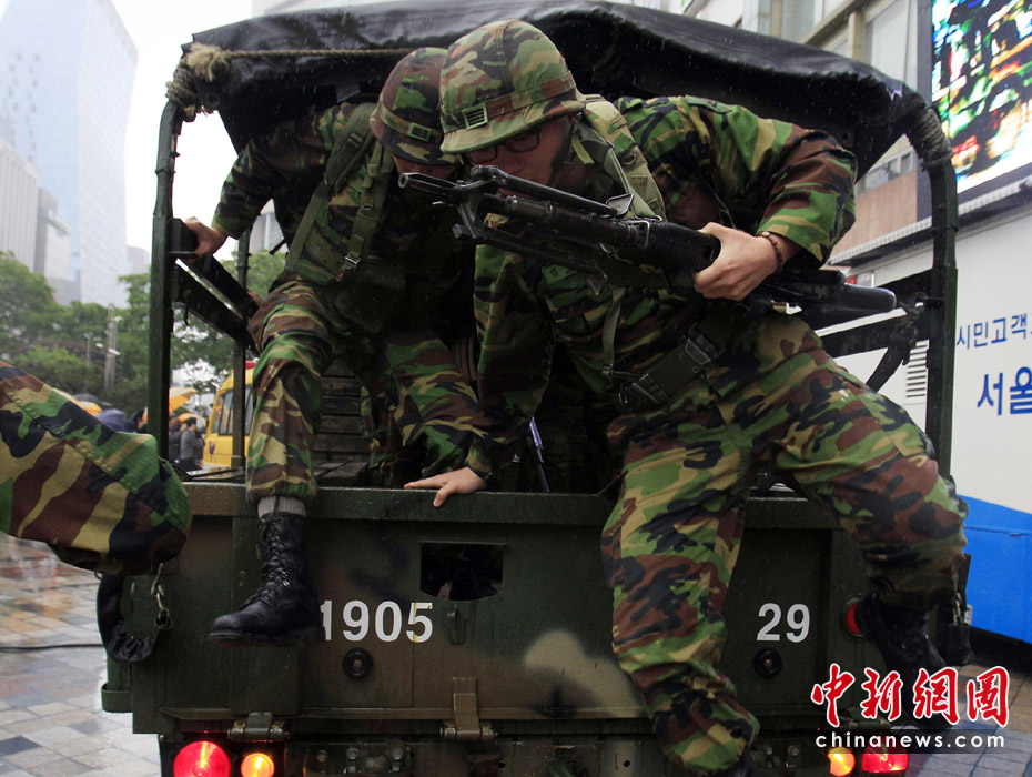 5月24日,韓國軍隊在靠近韓朝非軍事區(qū)的揚口舉行軍事演習(xí)。圖片來源:中國新聞網(wǎng)
