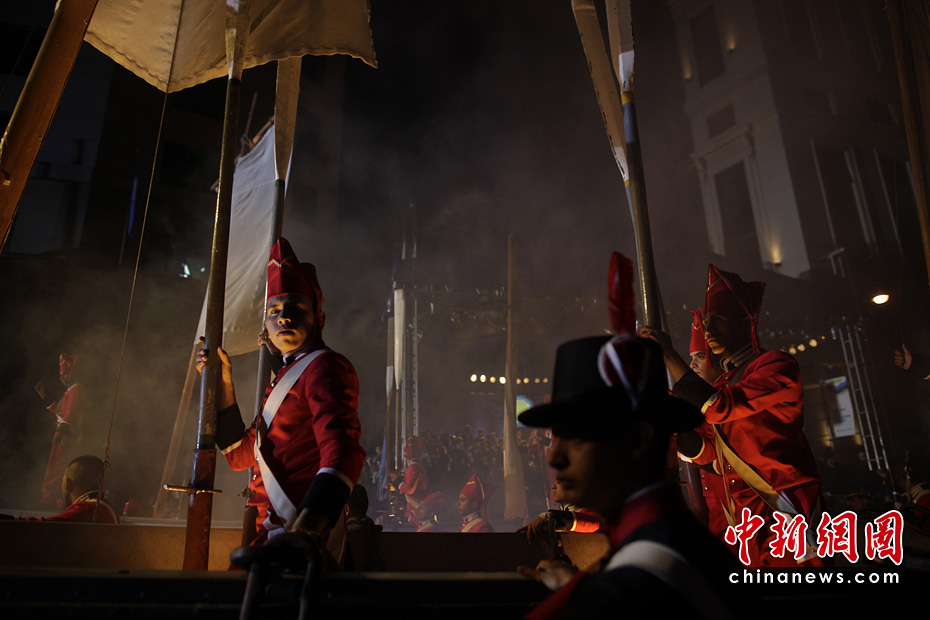 5月25日是阿根廷獨立200周年紀(jì)念日。在阿根廷首都布宜諾斯艾利斯人們舉行盛大的慶;顒蛹o(jì)念這一偉大的日子。圖片來源:中國新聞網(wǎng)