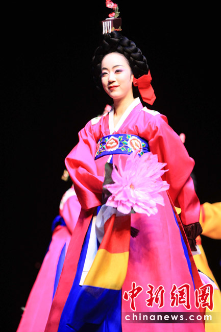 5月26日,韓服時裝秀在上海世博會上演,其宮廷服裝為別致內(nèi)容之一。當(dāng)日是世博會韓國館日,韓國舉行多項文藝表演推廣該國文化。中新社發(fā) 潘索菲 攝
