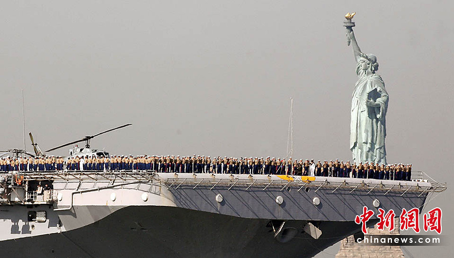 當?shù)貢r間5月26日,美國第23屆紐約艦隊周開幕,包括“硫磺島”號兩棲攻擊艦在內(nèi)的11艘參加艦隊周活動的軍艦由南向北在哈得孫河面上游弋。紐約民眾將以?吭诼D哈得孫河86號碼頭的“無畏號”航母博物館為中心,展開為期一周的慶祝和紀念活動。圖片來源:中國新聞網(wǎng)