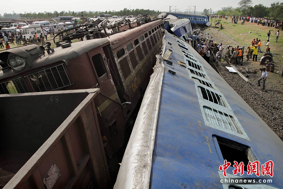 當(dāng)?shù)貢r(shí)間5月28日,印度一列特快列車在東部西孟加拉邦的西米德納布爾遭反政府武裝襲擊脫軌,造成百余人死傷。圖片來源:中國(guó)新聞網(wǎng)