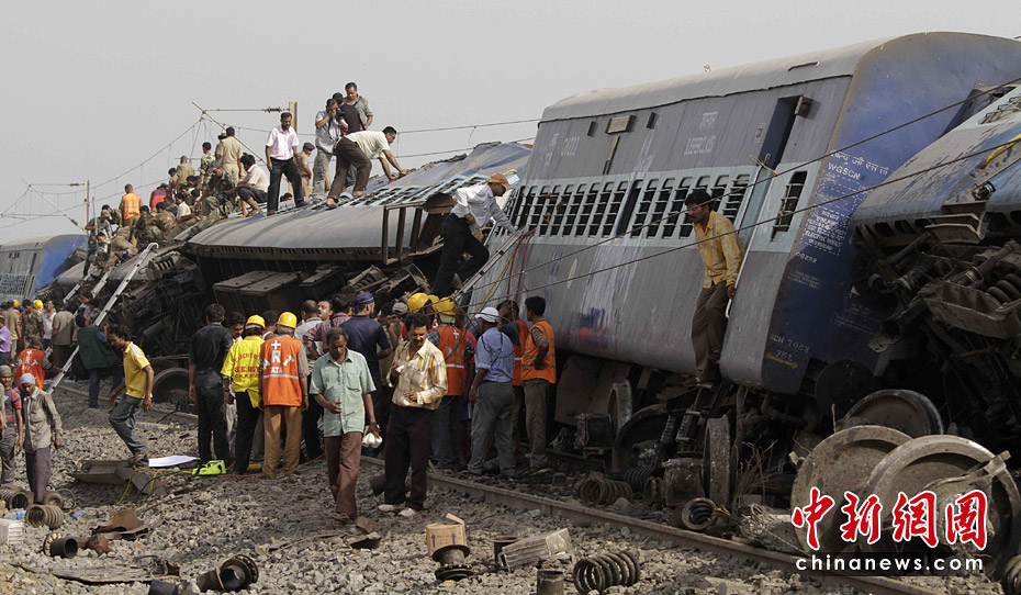 當(dāng)?shù)貢r間5月28日,印度一列特快列車在東部西孟加拉邦的西米德納布爾遭反政府武裝襲擊脫軌,造成百余人死傷。圖片來源:中國新聞網(wǎng)