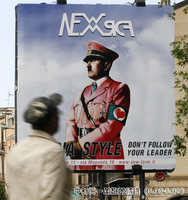 近日,意大利西西里首府巴勒莫街頭隨處可見一款備受爭議的海報——臭名昭著的納粹頭子希特勒化身“粉紅男郎”,納粹軍服胳膊上的納粹符號被大大的粉色心形圖案代替。圖片來源:中國新聞網(wǎng)>>點擊觀看詳細內(nèi)容