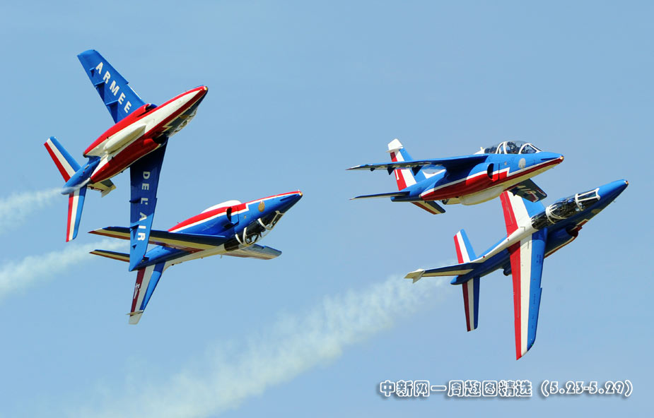 5月25日,法國巡邏兵特技飛行表演隊(duì)在普羅旺斯地區(qū)進(jìn)行驚險的飛行表演。 圖片來源:中國新聞網(wǎng)>>點(diǎn)擊觀看詳細(xì)內(nèi)容