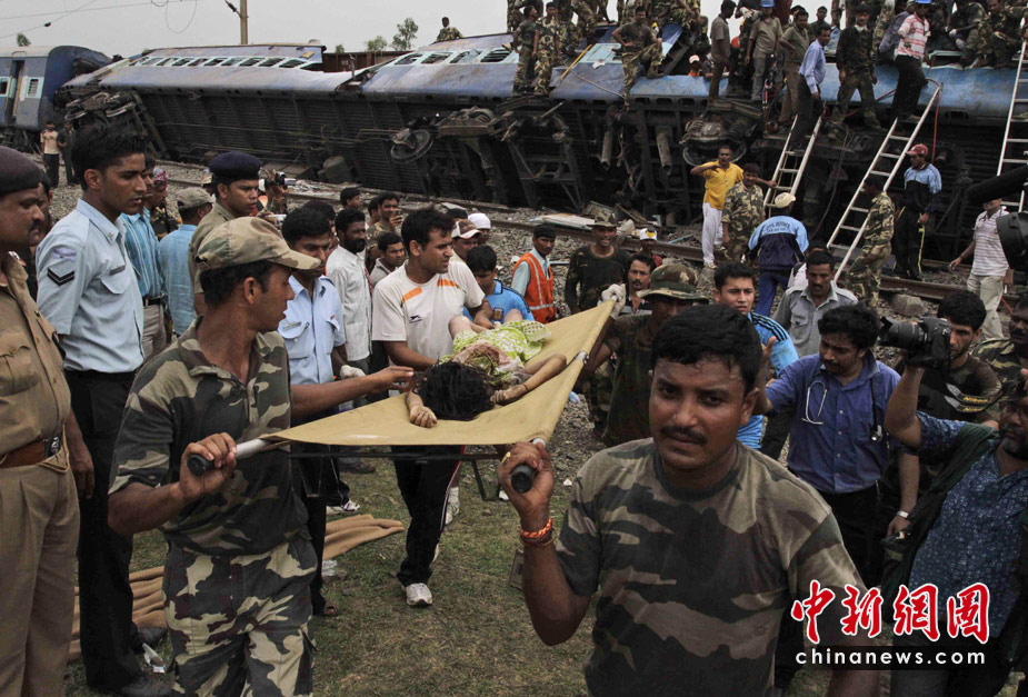 印度東部西孟加拉邦火車遇襲脫軌事故已經(jīng)發(fā)生30多個小時,29日救援人員繼續(xù)在現(xiàn)場進行搜救工作。西孟加拉邦警察局長表示,截至目前已經(jīng)發(fā)現(xiàn)110具尸體。同時仍有多達50人下落不明。圖為救援現(xiàn)場。