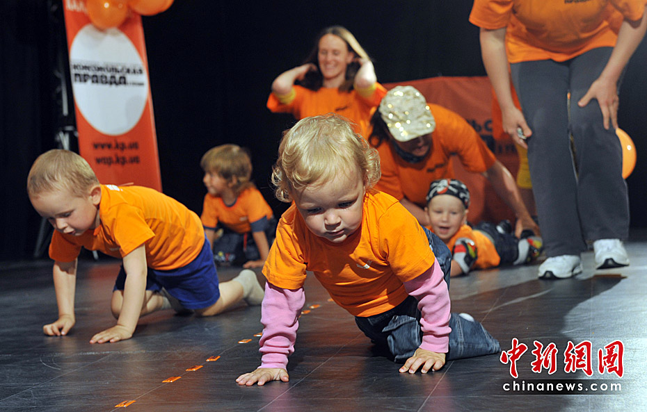 當(dāng)?shù)貢r(shí)間5月31日,烏克蘭基輔舉行了寶寶爬行大賽。數(shù)十名嬰兒在母親的鼓勵(lì)下奮力向4米外的終點(diǎn)爬去。圖片來源:中國新聞網(wǎng)