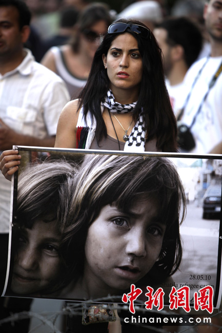以色列海軍31日對(duì)國際人道救援船隊(duì)發(fā)動(dòng)襲擊,船上至少有9名支持巴勒斯坦的活動(dòng)人士被以軍打死,眾多國家和國際組織紛紛表示“震驚”,多國民眾走上街頭,對(duì)襲擊事件表示抗議。圖為在塞浦路斯,民眾在街頭游行抗議。