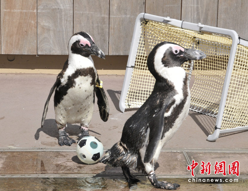 6月1日,在日本東京一家海洋館里,幾只企鵝“披掛上陣”,進(jìn)行了一場別開生面的足球賽,迎接世界杯。
