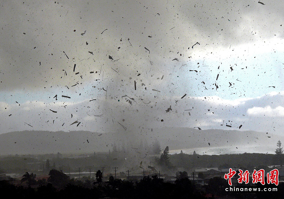 6月3日,澳大利亞新南威爾士州海濱城鎮(zhèn)倫諾克斯黑德遭到龍卷風襲擊,大樹被連根拔起,屋頂被掀翻,重型拖車也被拋到半空中。數(shù)千所民居停電。一共有12所房屋在這場龍卷風中被摧毀,6人受傷,傷勢不重。所幸沒有人員死亡的報告。圖片來源:中國新聞網(wǎng)