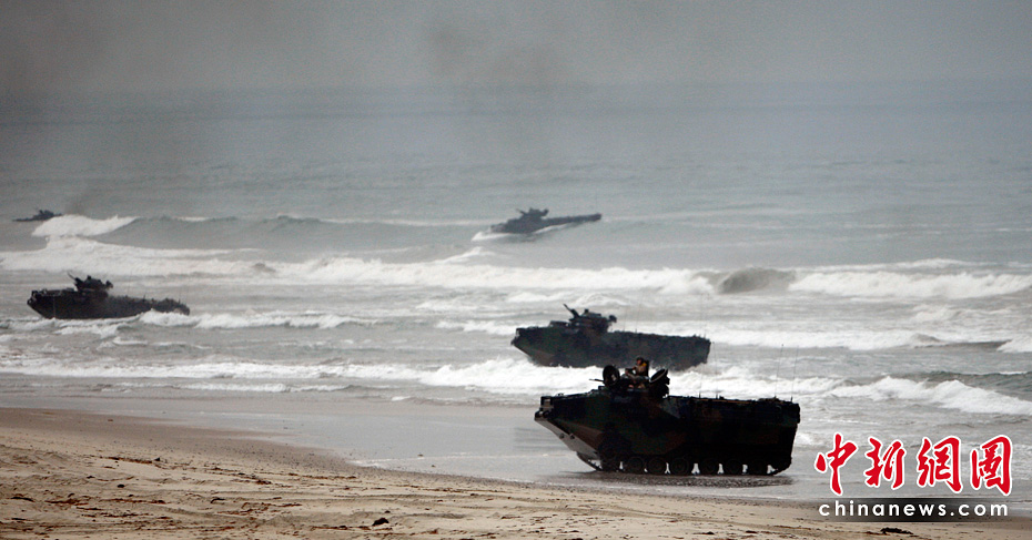 當(dāng)?shù)貢r(shí)間6月4日,約5000名水兵和陸戰(zhàn)隊(duì)員在美國(guó)加利福尼亞州舉行了代號(hào)為“黎明突擊”的搶灘登陸軍事演習(xí)。圖片來源:中國(guó)新聞網(wǎng)