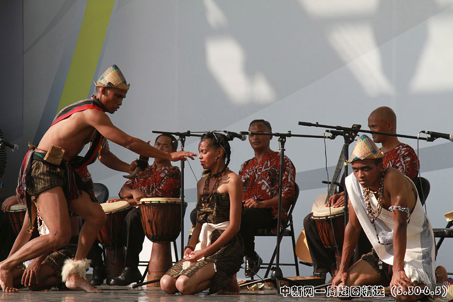 5月30日,馬達(dá)加斯加肯特思米諾歌舞團(tuán)在世博園非洲廣場(chǎng)表演比洛傳統(tǒng)儀式,逼真的神態(tài)、激情的表演,博得許多參觀者稱贊。當(dāng)天是馬達(dá)加斯加館日,世博中心內(nèi)舉行了其國(guó)家館日活動(dòng),馬方和中方代表共同出席。圖片來(lái)源:中國(guó)新聞網(wǎng)>>點(diǎn)擊觀看詳細(xì)內(nèi)容