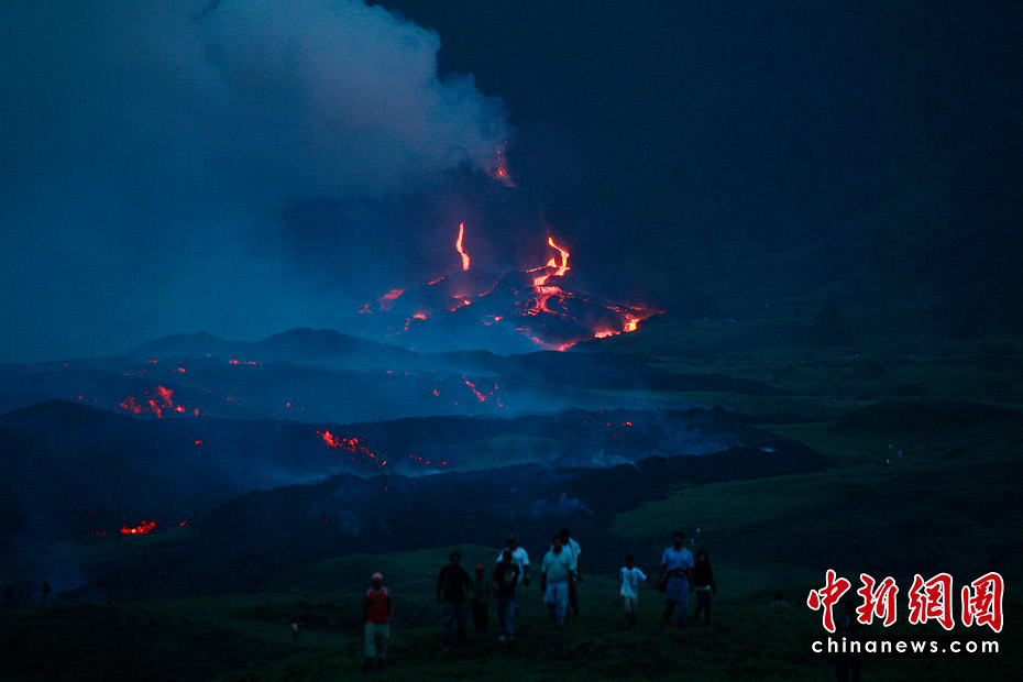 當(dāng)?shù)貢r間6月4日,危地馬拉帕卡亞火山噴發(fā),涌出大量熔巖,迫使周邊數(shù)千居民緊急疏散。圖片來源:中國新聞網(wǎng)