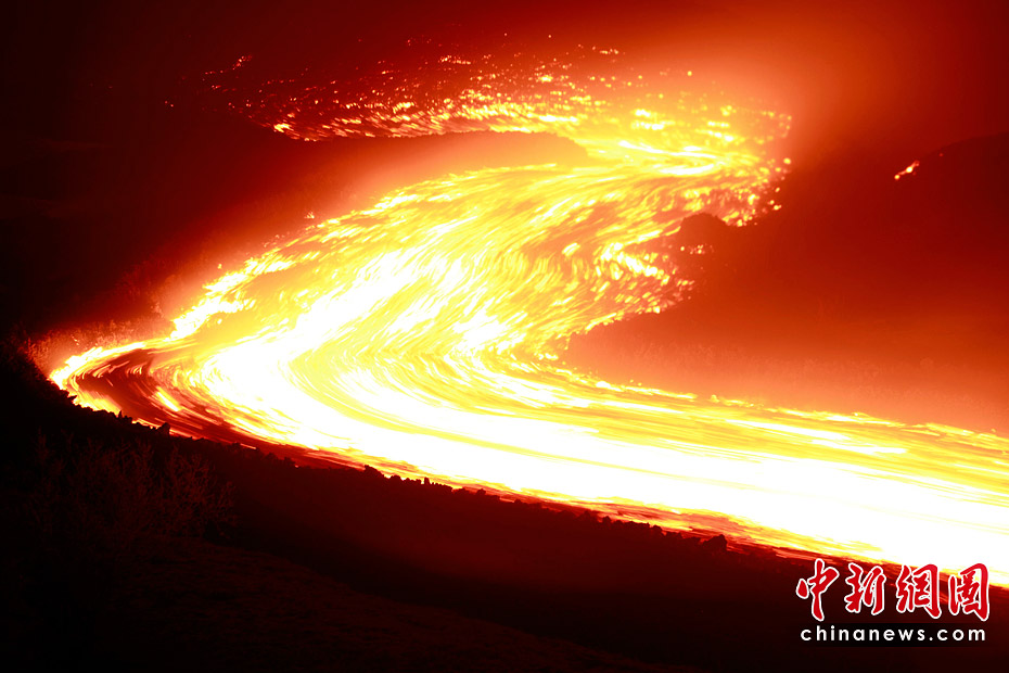 當(dāng)?shù)貢r間6月4日,危地馬拉帕卡亞火山噴發(fā),涌出大量熔巖,迫使周邊數(shù)千居民緊急疏散。圖片來源:中國新聞網(wǎng)