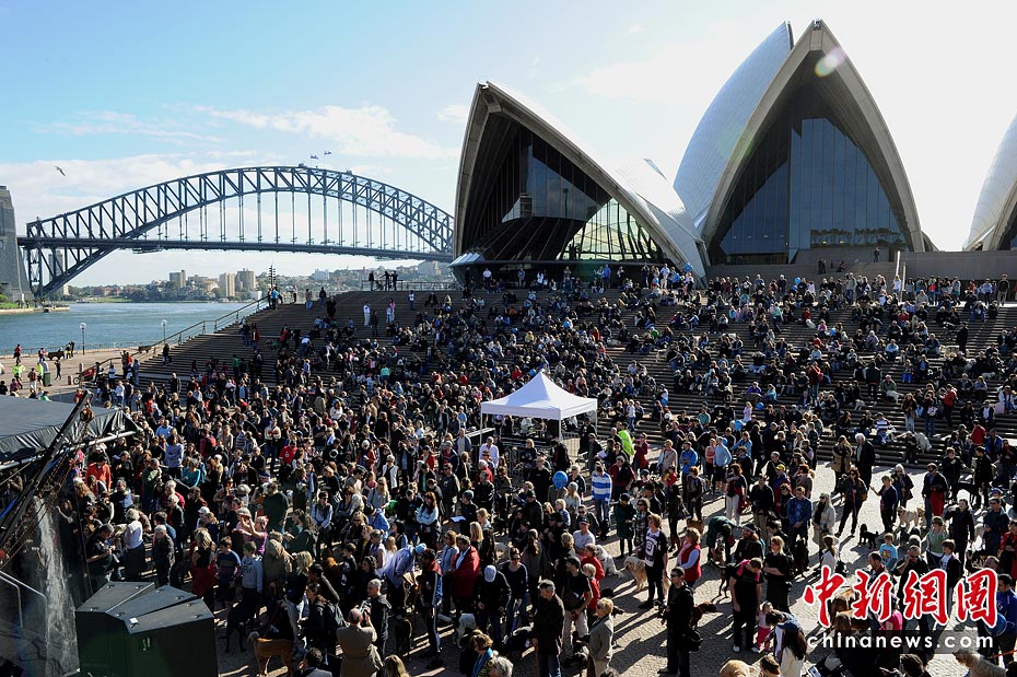 6月5日,澳大利亞悉尼歌劇院外舉辦了全球首場(chǎng)狗能聽(tīng)懂的音樂(lè)會(huì),約有1000人帶著數(shù)百只愛(ài)犬在劇院前庭和階梯落坐,聆聽(tīng)“狗的音樂(lè)”,整場(chǎng)音樂(lè)會(huì)全長(zhǎng)20分鐘。圖片來(lái)源:中國(guó)新聞網(wǎng)