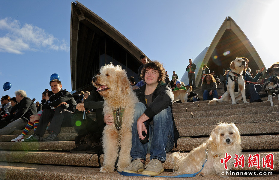 6月5日,澳大利亞悉尼歌劇院外舉辦了全球首場(chǎng)狗能聽懂的音樂(lè)會(huì),約有1000人帶著數(shù)百只愛犬在劇院前庭和階梯落坐,聆聽“狗的音樂(lè)”,整場(chǎng)音樂(lè)會(huì)全長(zhǎng)20分鐘。圖片來(lái)源:中國(guó)新聞網(wǎng)