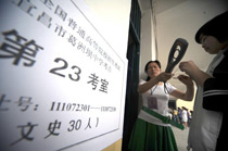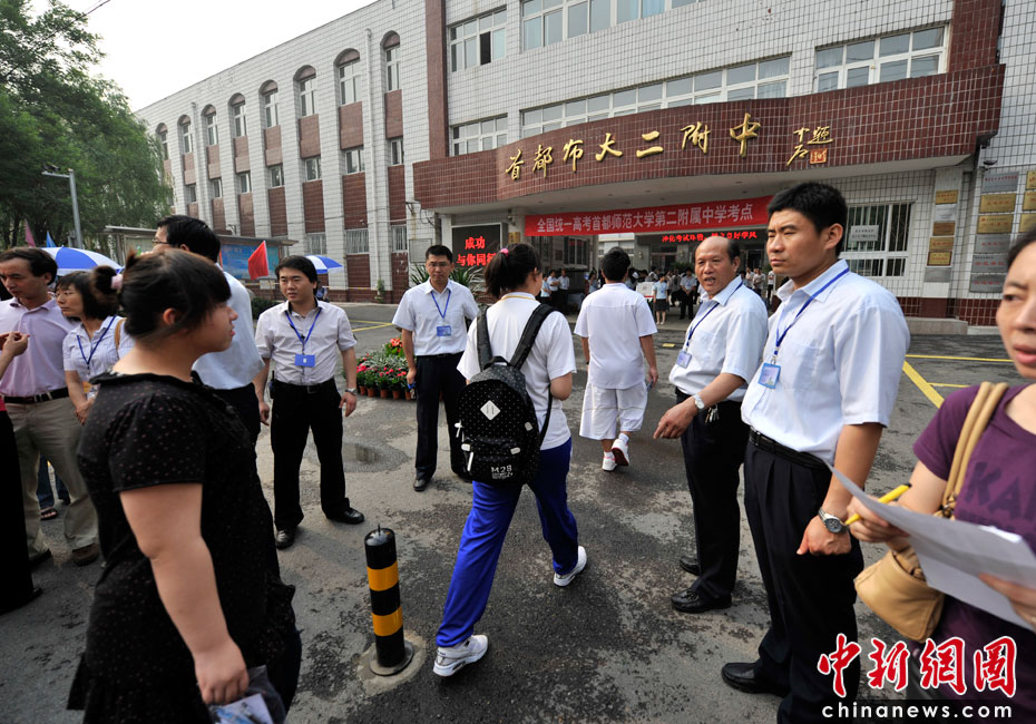 2010年全國高考6月7日日拉開大幕,957萬考生走進(jìn)考場。由于報(bào)名人數(shù)減少,而招生計(jì)劃增加,教育部預(yù)計(jì)今年全國高考平均錄取率將會(huì)增加近7%。圖為首都師范大學(xué)第二附屬中學(xué)考點(diǎn)。中新網(wǎng)記者 金碩 攝