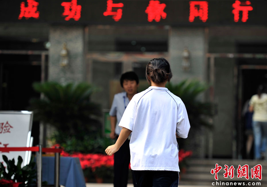 2010年全國高考6月7日日拉開大幕,957萬考生走進(jìn)考場。由于報名人數(shù)減少,而招生計劃增加,教育部預(yù)計今年全國高考平均錄取率將會增加近7%。圖為首都師范大學(xué)第二附屬中學(xué)考點。中新網(wǎng)記者 金碩 攝